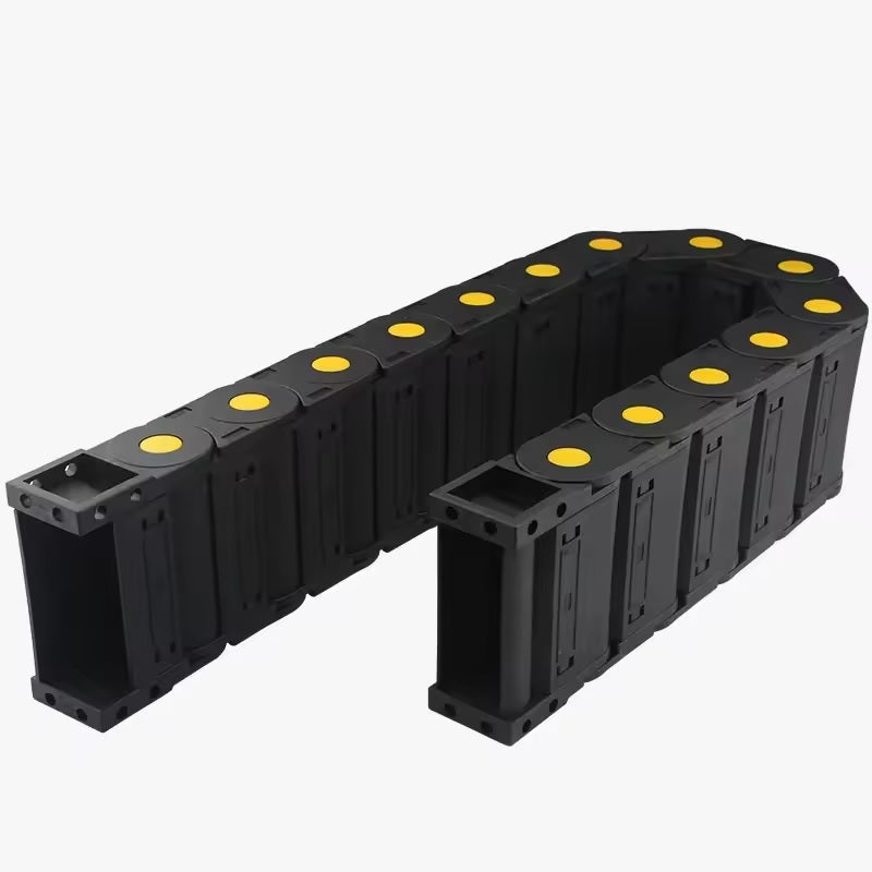 Drag chains for cable management. Measurements below indicate the inner dimensions.